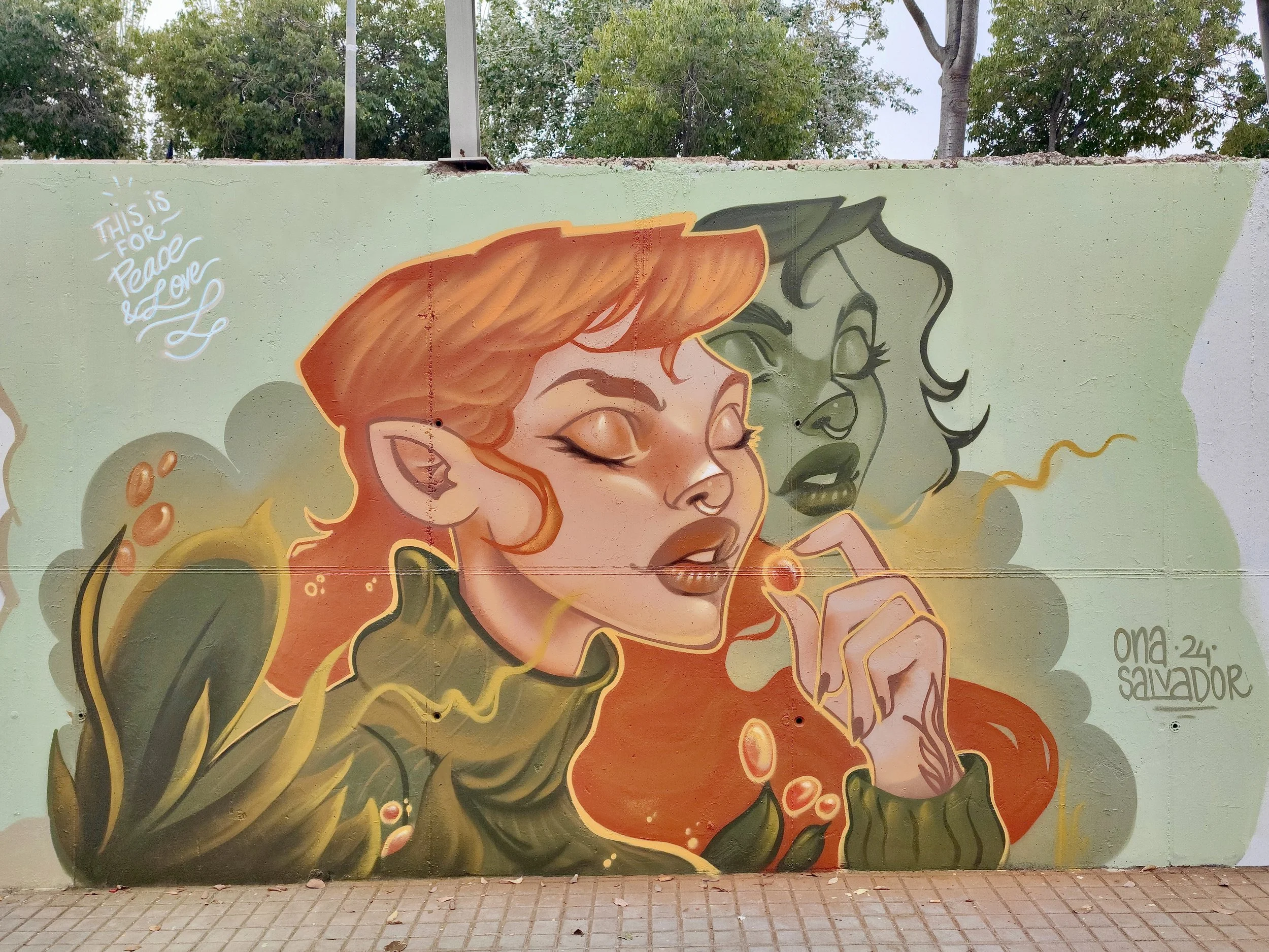 Ona Salvador is a Barcelona based illustrator and muralist. Her work brings walls to life through colorful, fantasy-filled illustrations, focusing on female characters that embody power and mysticism. Influenced by cartoon animation style, she has developed her own artistic language that blends playful aesthetics with deeper meanings, always aiming to capture the essence and strength of the feminine. Each piece invites the viewer to explore a world where women are the protagonists of their own universe, full of magic and energy.